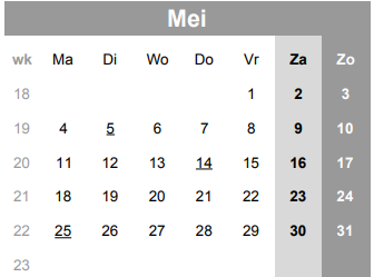 2 mei VMA Cycling Tour kids; 65, 90 en 120 km; vertrekpunt Centrum De Vierschaar, Xavier De Cocklaan 5, 9831 Sint-Martens-Latem; meer info en GPX bestanden via deze link. (vaste rit op clubkalender)