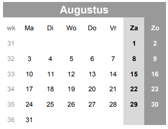 1 augustus 1-2-3XL 't Kruisken; meer info op deze website (vaste rit op clubkalender)