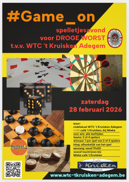 Op zaterdag 28 februari 2026 organiseren we samen met Mieke van café 't Kruisken een spelletjesavond ter vervanging van onze vroeger georganiseerde bingo-avond.